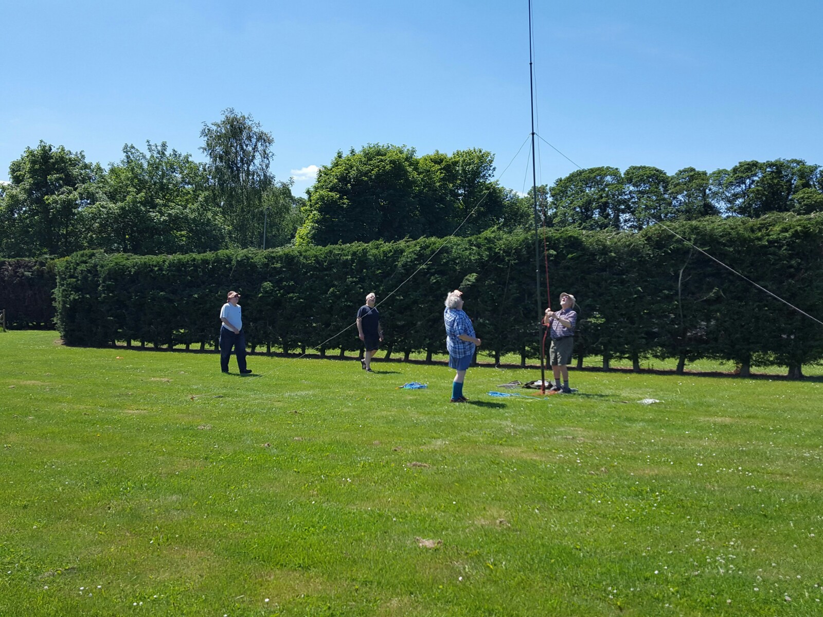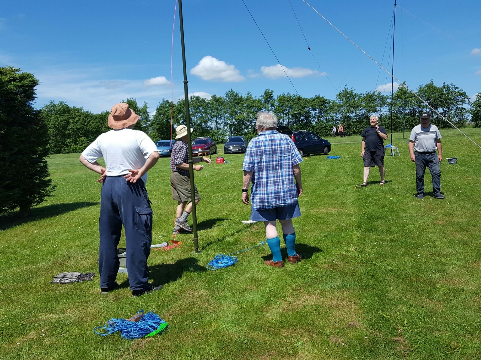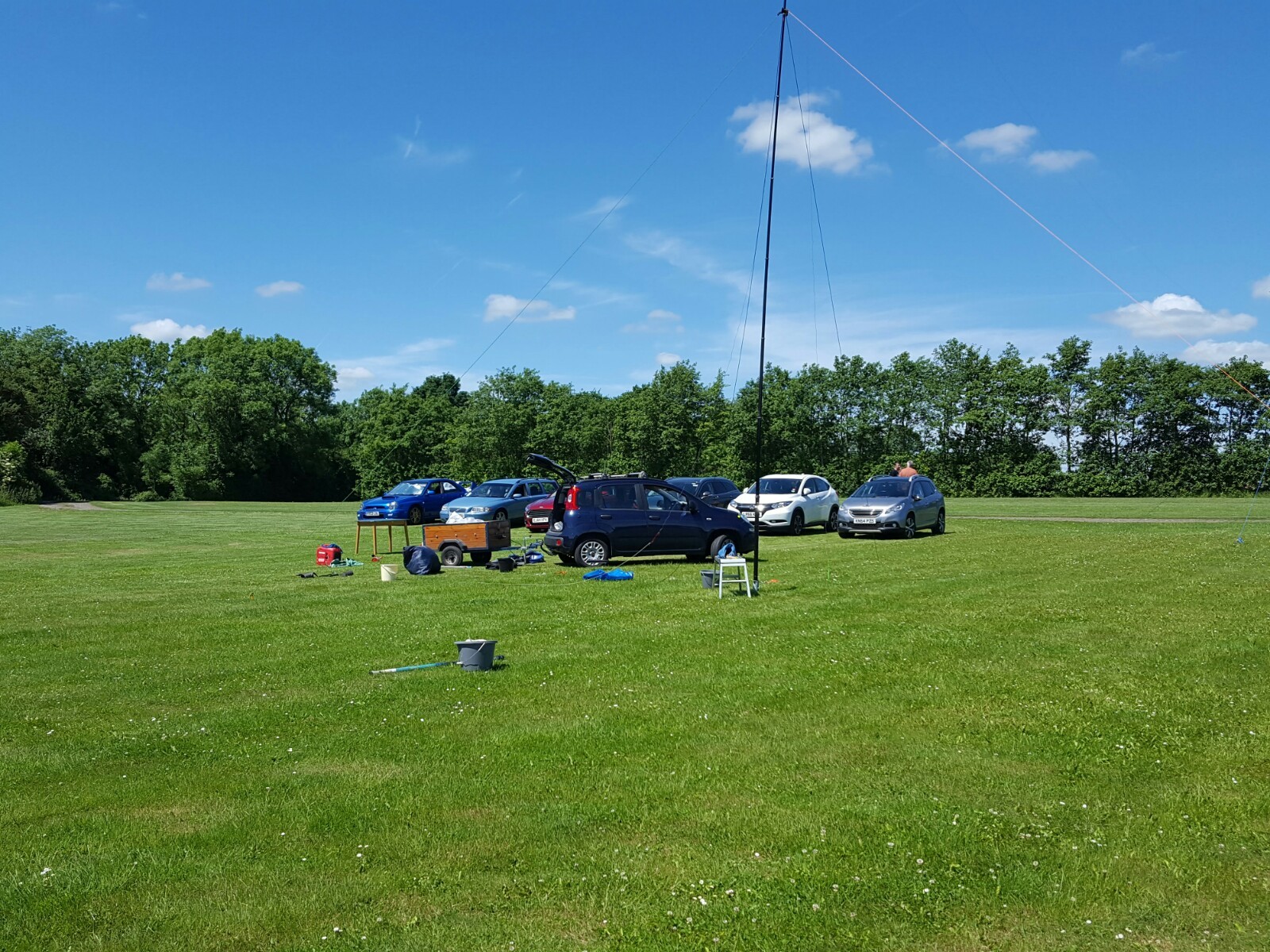 We all arrived on site to erect the antenna and station at 1300, that was me Ron G4DDX, Tom G4BYE, Fred G0MDR, and Phil G4GNK who were the operators. Also Keith G4KGP, Roger M6RIZ, Marti G0NJS with his tent and I think one other member. Keith and Antonio turned up around 0100 to give a hand dismantling and we also had visits from M0RLO and G0WAT during the evening.