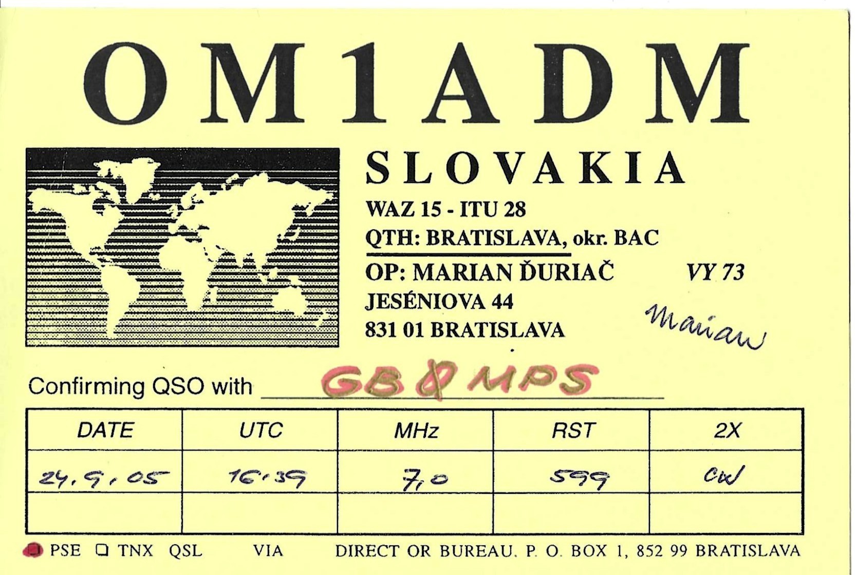 OM1ADM - 24/09/2005 - 40M - CW - 599