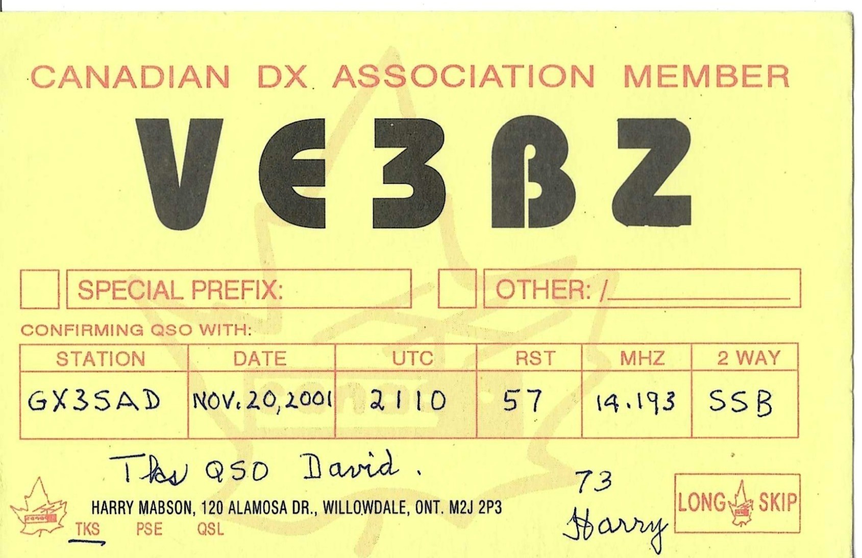 VE3BZ - 20/11/2001 - 15M - SSB - 57
