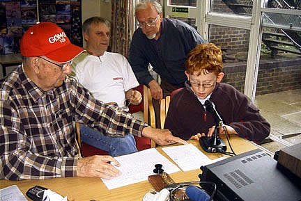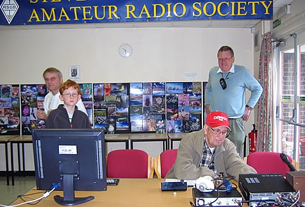 We had many visitors talking to us about amateur radio, some went away with leaflets and old copies of RadCom and PW that were on show. As far as radio went, as usual there wasn’t much action, although I think we managed to nearly fill a page of the logbook, thanks to the efforts of Ken G0MKN, Tom G4BYE, and some excellent operating by Alex M3IZR under the very difficult conditions of other amateurs in the room. Ken G0MKN was a great help to Alex. We used both “real” radio and CW [HI] for the few contacts made.